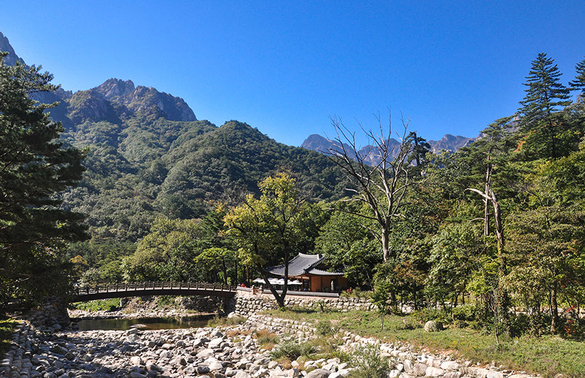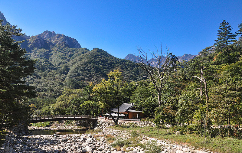 Für die zweite Wanderung in Korea fuhren wir an die Ostküste von Südkorea in das Städtchen Sokcho. Dieses ist von Seoul aus - ohne Umsteigen - mit dem Bus zu erreichen. Leider hat sie, bis auf den nahe gelegenen Seoraksan Nationalpark nicht besonders viel zu bieten - immerhin gibt es eine direkte Busanbindung zum Park. Dort angekommen muss man ein Ticket für den Park lösen und kann sich mit kostenlosen Karten in Englischer Sprache ausstatten.