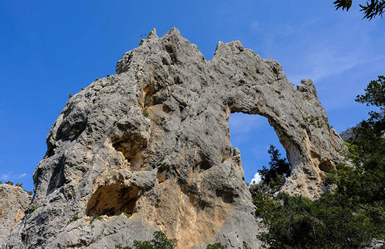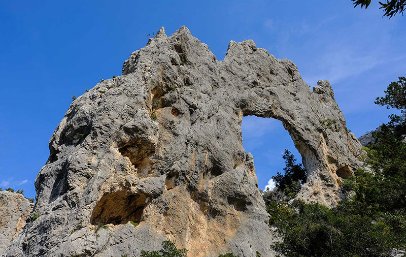 Wenig später kamen wir zu einem absoluten Naturhighlight Sardiniens: Dem Arco di Lupiru. Hierbei handelt es sich um eine senkrechte „Scheibe“ aus wenigen Metern dickem Gestein, die mittig ein großes, kreisrundes Loch ziert. Ein perfekter Ort zum Verweilen, Kraxeln und Genießen der einmaligen Aussicht.
